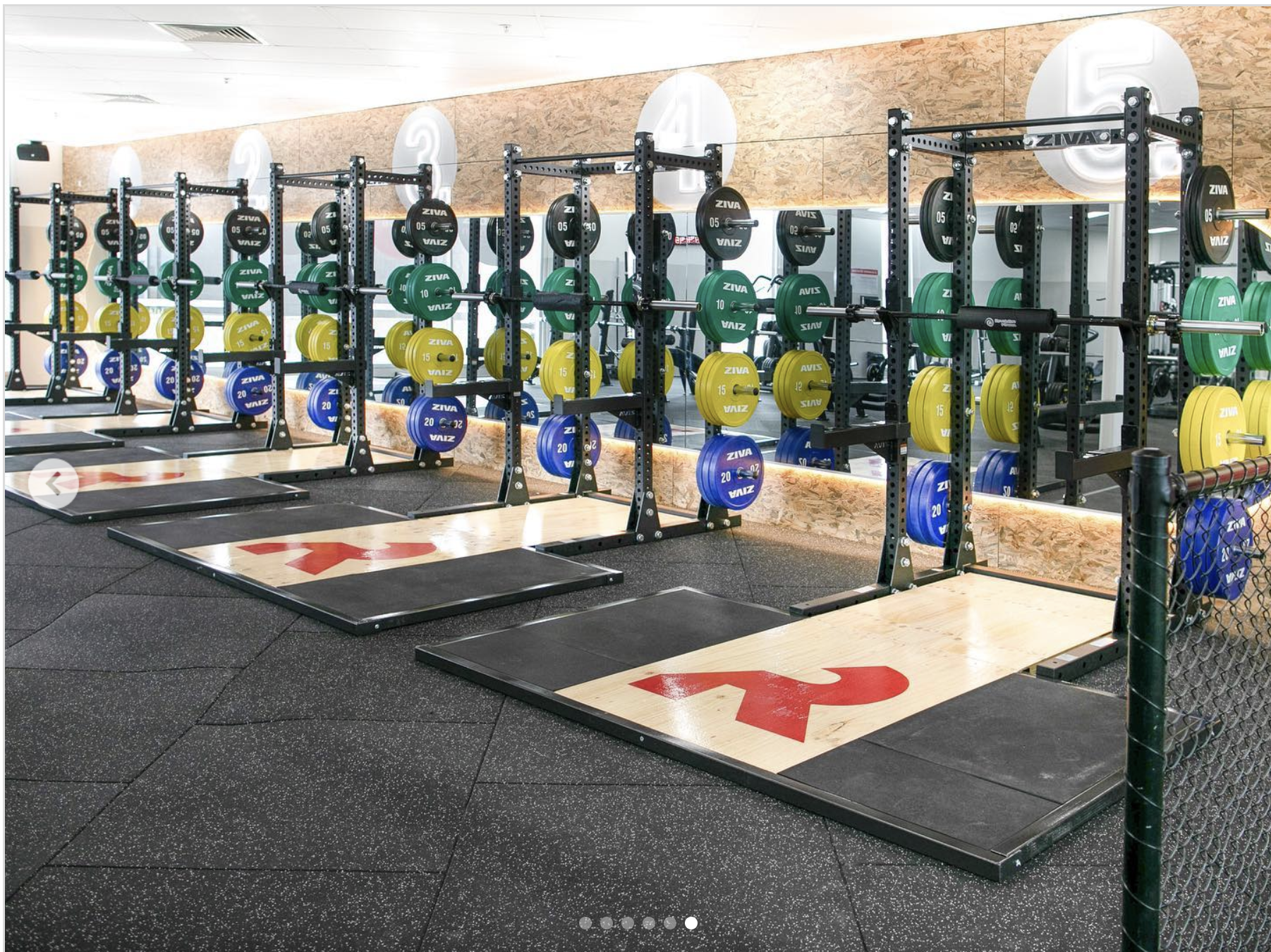 A dynamic fitness fitout defined by bold lighting and strong visual identity.